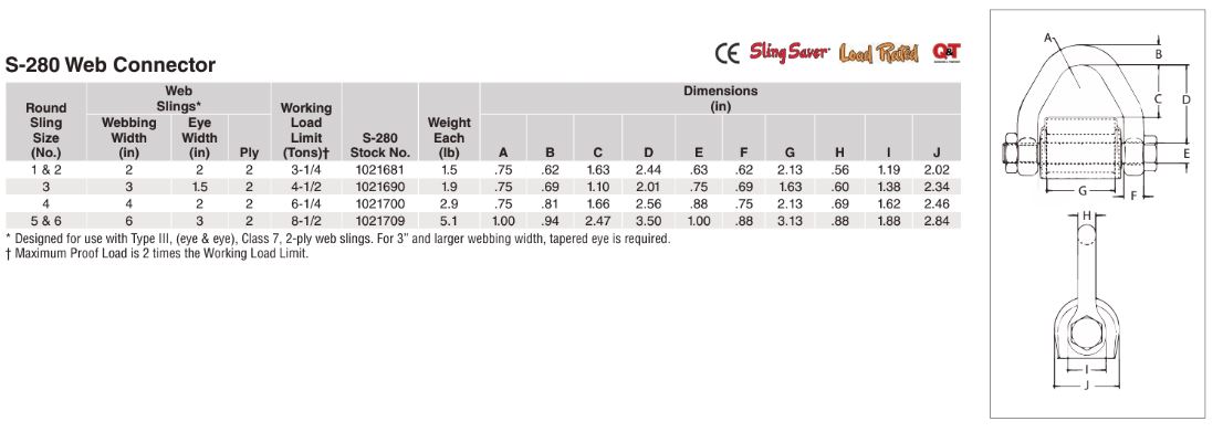 - Connects synthetic web and synthetic round slings to conventional Crosby hardware.